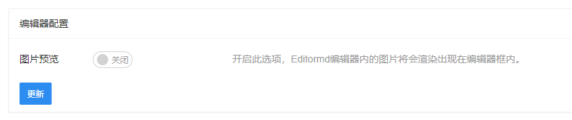 在后台管理站点设置页面的「文集、文档、素材设置」中你可以对站点编辑器进行一些自定义配置。 ## 图片预览 在Editor.md编辑器中,默认会预览显示编辑区域的图片,如果你不希望在编辑器区域渲染显示图片,可以关闭「图片预览开关」。